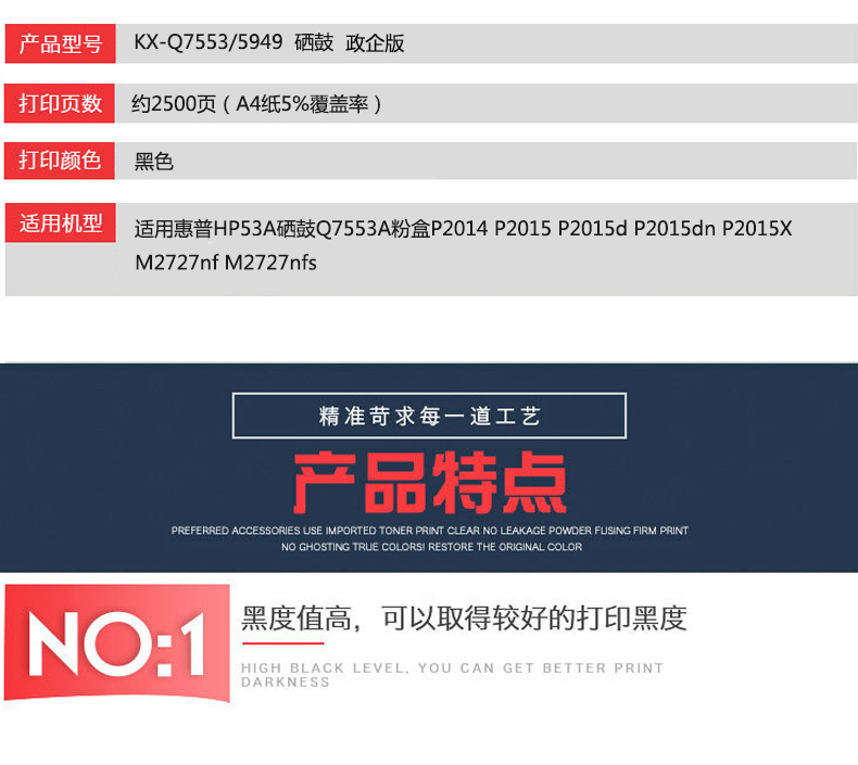 凱欣KX-Q7553/5949 適用惠普HP53A硒鼓Q7553A粉盒P2014 P2015 P2015d P2015dn P2015X墨盒M2727nf M2727nfs打印機(jī)硒鼓 全國統(tǒng)一價(jià):285元