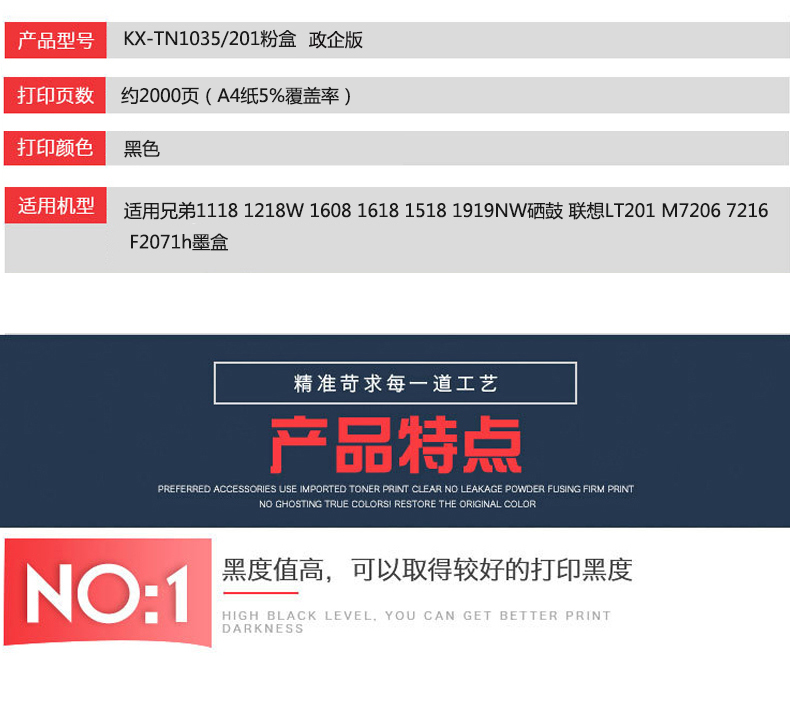 凱欣KX-TN1035/201 KX-1035/201粉盒適用兄弟1118 1218W 1608 1618 1518 1919NW硒鼓 聯(lián)想LT201 M7206 全國統(tǒng)一價:169元
