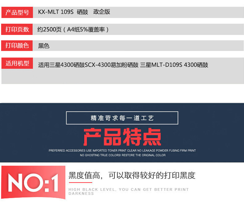 凱欣KX-MLT 109S 適用三星4300硒鼓SCX-4300易加粉硒鼓 三星MLT-D109S 4300硒鼓 全國統(tǒng)一價(jià):189元