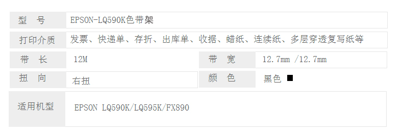 凱欣 KX-LQ590K 適用愛普生EPSON FX890 LQ590K LQ590KII LQ595K S015337 C13S015590打印機色帶架含芯 全國統(tǒng)一價:33元