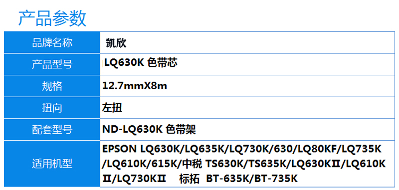 凱欣 KX-LQ630K 適用愛(ài)普生EPSON LQ630K 635K 730K 735K 80KF 610K 615K 80KFII色帶芯 全國(guó)統(tǒng)一價(jià):60元/6個(gè)