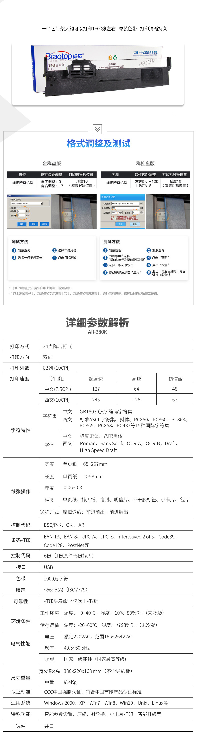 標拓(Biaotop)AR380K 針式打印機 全國統(tǒng)一價:899元