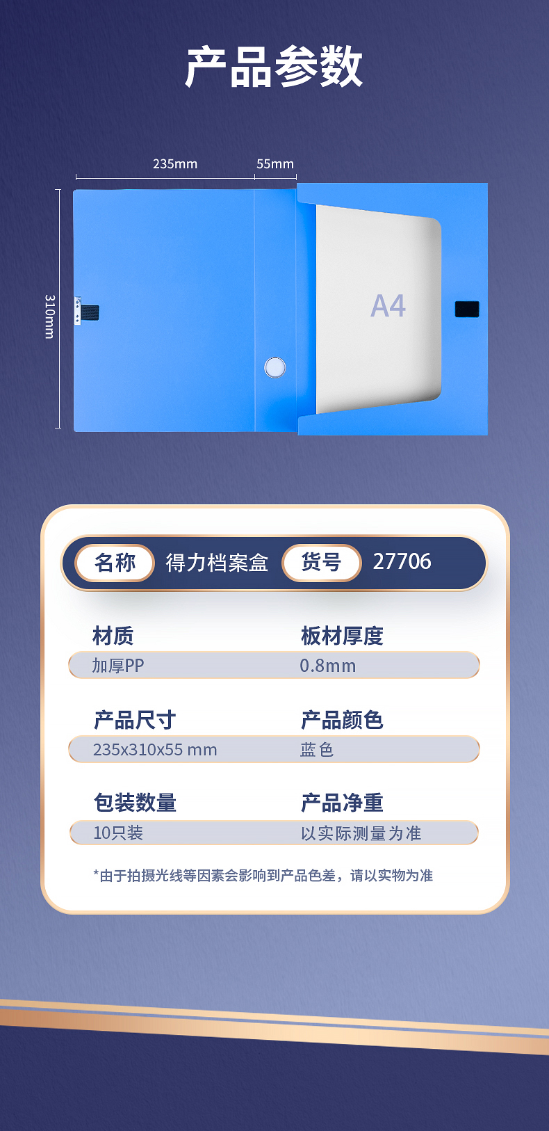 得力 檔案盒55mm 27706 全國統(tǒng)一價:85元