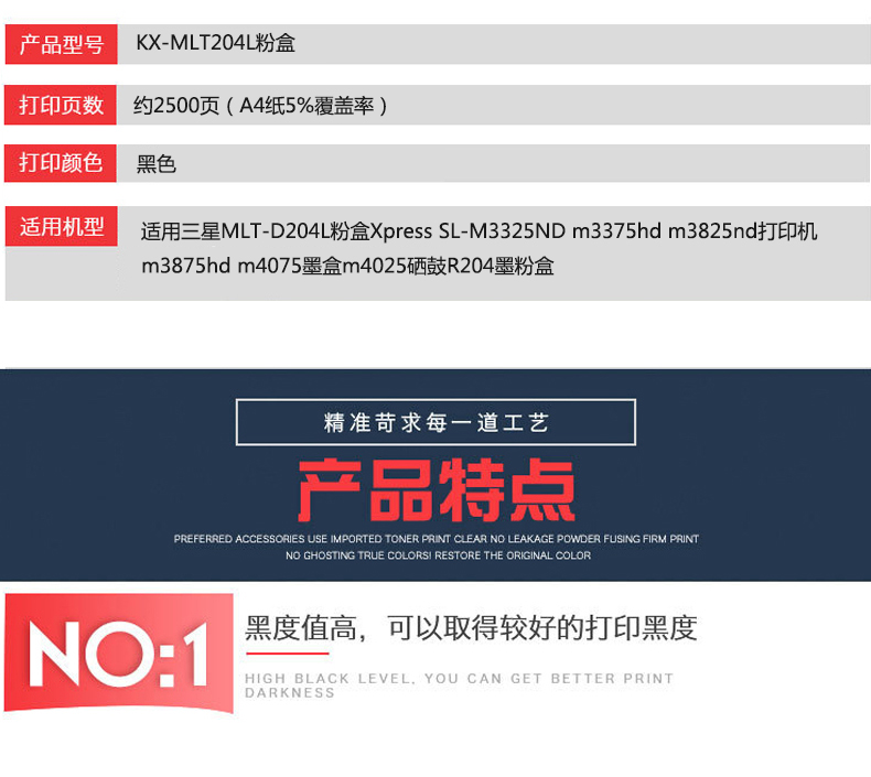 凱欣標(biāo)準版MLT204L粉盒適用三星MLT-D204L Xpress SL-M3325ND m3375hd m3825nd打印機m3875hd 全國統(tǒng)一價:186元